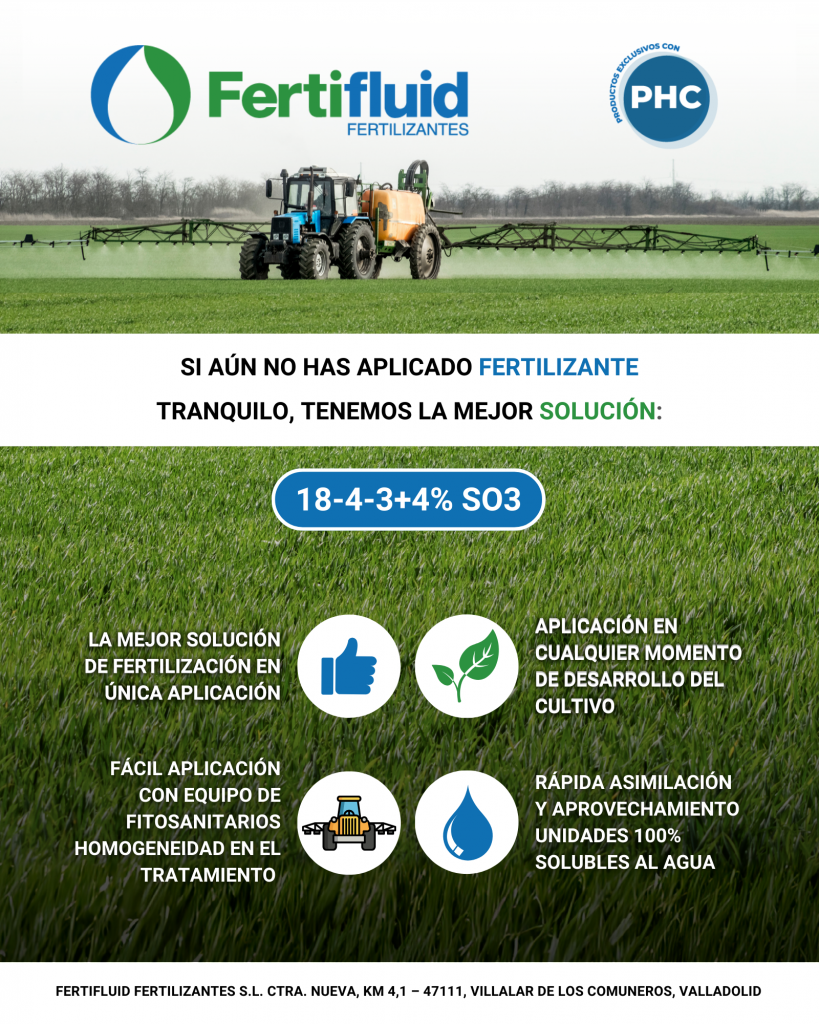 Gracias a Fertifluid Fertilizantes, cualquier estrategia de fertilización, incluso la más atípica, puede traducirse en máxima rentabilidad. Y es que la empresa líder en nutrición líquida ha desarrollado una solución única en el mercado: un fertilizante de aplicación única, formulado para cubrir las necesidades nutricionales completas del cultivo en una sola pasada, sin comprometer ni la calidad ni el rendimiento final.